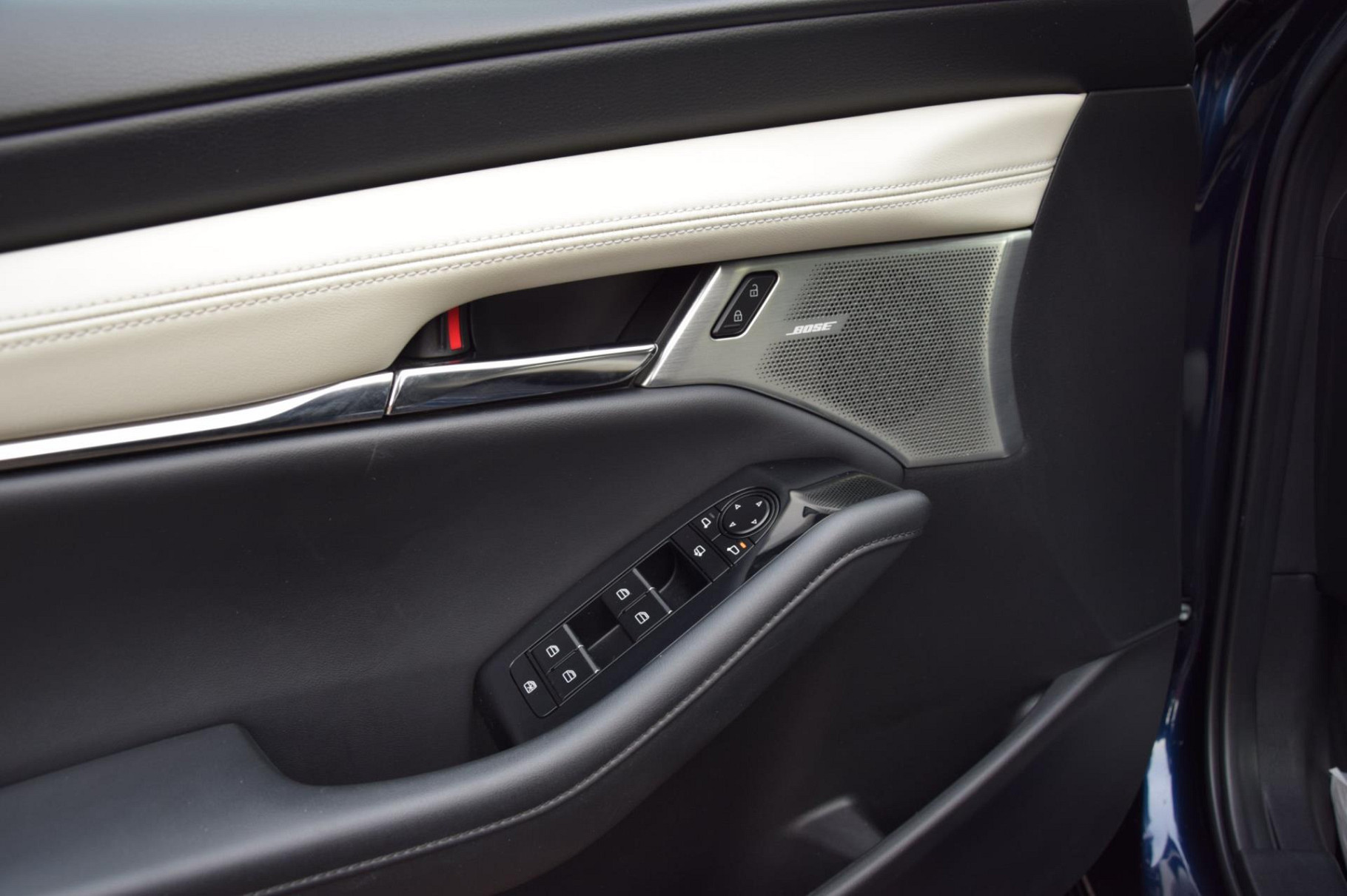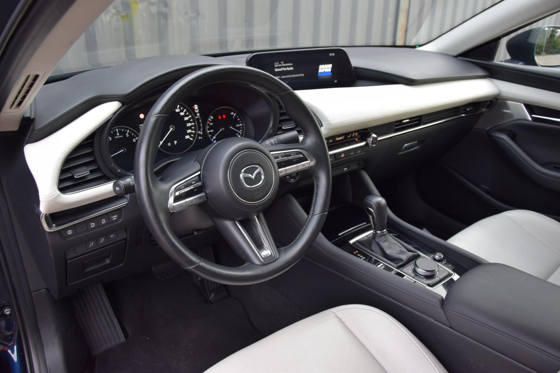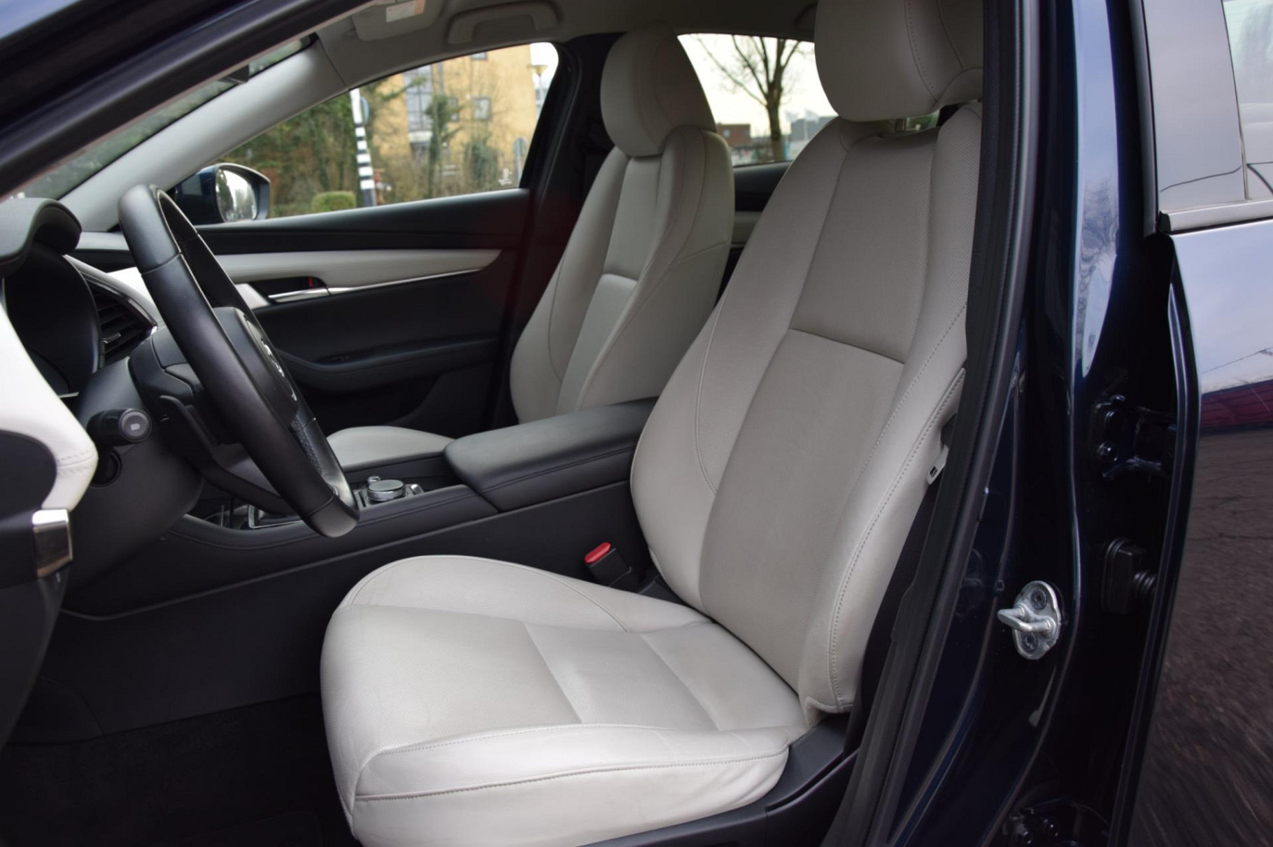 Van binnen straalt hij luxe uit met luxe lederen bekleding, verwarmde stoelen, een verwarmd stuur, elektronische climate control en een compleet premium audiosysteem voor optimaal geluid. De Mazda 3 is verder voorzien van alle moderne veiligheids- en comfortopties zoals adaptieve cruise control met Stop&Go, een head-up display, full map navigatiesysteem, rijstrooksensor met correctie, vermoeidheidsherkenning en bots waarschuwing systeem. De elektrisch verstelbare bestuurdersstoel met geheugen en parkeergemak dankzij sensoren én een achteruitrijcamera maken iedere rit compleet.